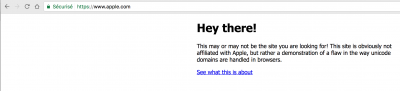 Récemment un article a été publiqué par Xudong Xheng expliquant une attaque de phishing basée sur les domaines unicode (dangereux même pour les connaisseurs…). Vous avez le faux site d’Apple (qui est www.xn--80ak6aa92e.com) qui a été mis en place pour démontrer la « faille » que ça provoque, si vous suivez l’idée vous pouvez potentiellement faire la même chose avec PayPal qui devient www.xn--l-7sba6dbr.com (bien que ça a déjà été fait à l’époque)